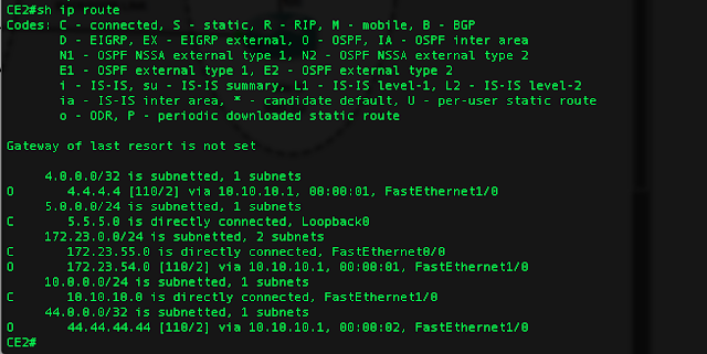 As you can see, 172.23.55.0 network ( PE2-CE2) is learned over 172.23.54.16 (CE1's next hop)